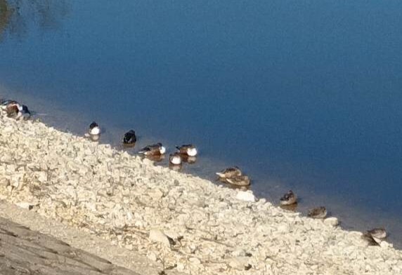 カモ達が水際で羽を休めていました。