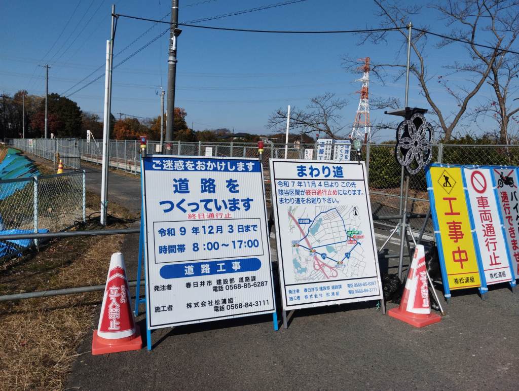 道路は通行止めです。来年の12月まで工事のようです。
