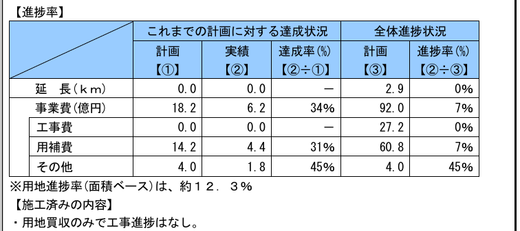 計画をよく確認すると、「用地買収に時間がかかっている」「用地買収のみで工事実施はなし」とある。まだ工事は始まっていないのだ。