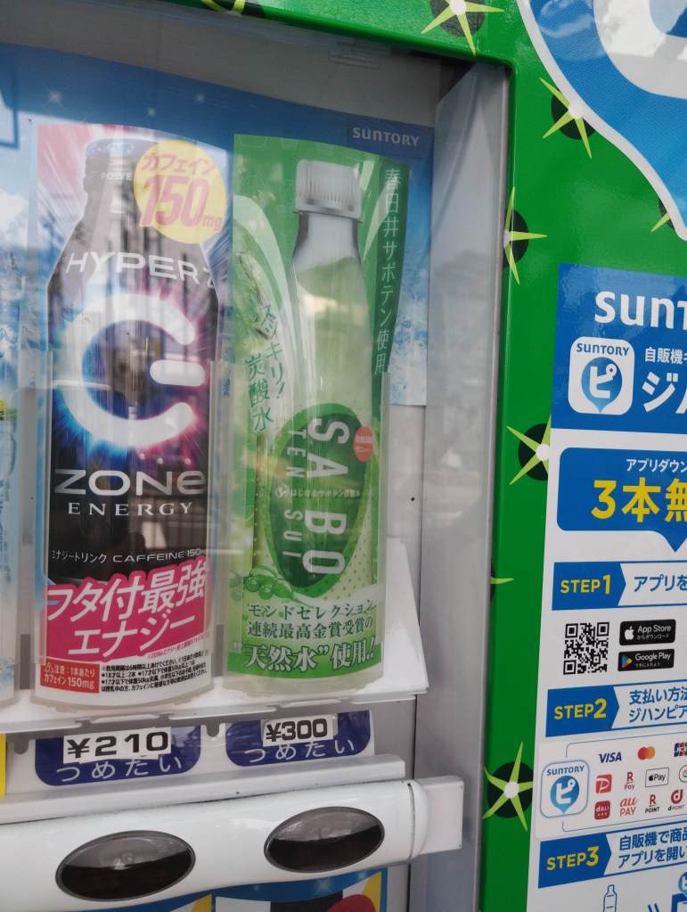 散歩中に発見したので買ってみた。(右は自宅のサボテン。サボテン炭酸水にはウチワサボテンが入っているとのことなので、この種ではない)