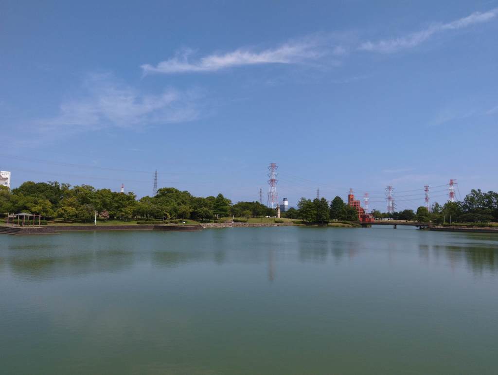 This is Ochiai-park in Kasugai city, Aichi pref. in Japan. It has Ochiai-pond (about 2 km outer perimeter).